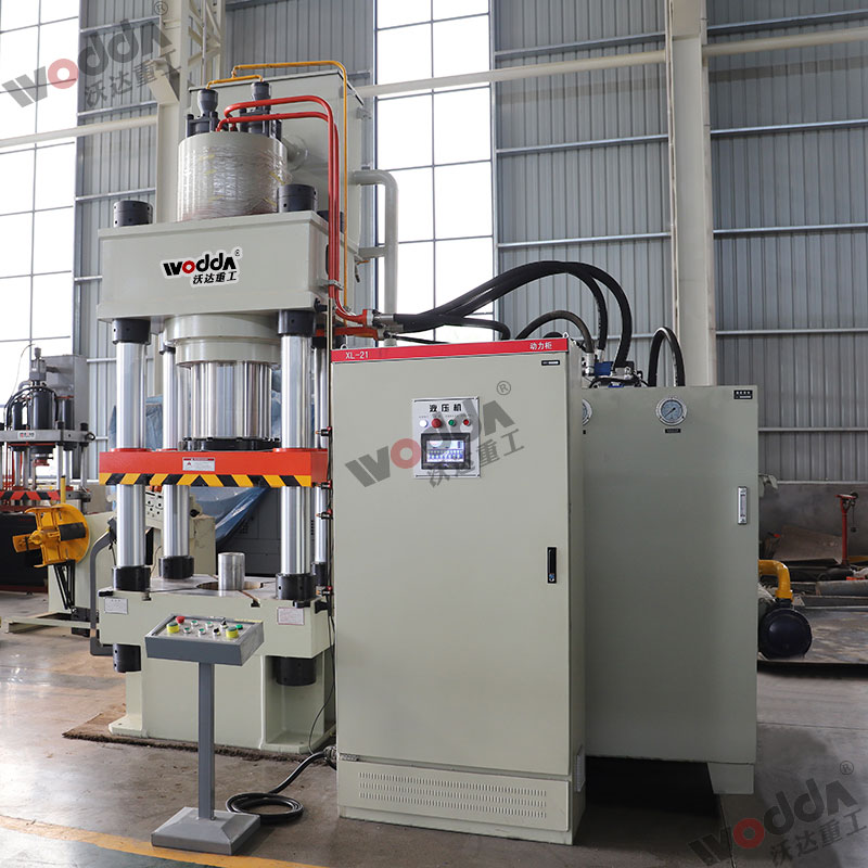 1、500吨热模锻液压机设备采用四柱式结构,设备结构稳定可靠,使用寿命长,工作吨位大;