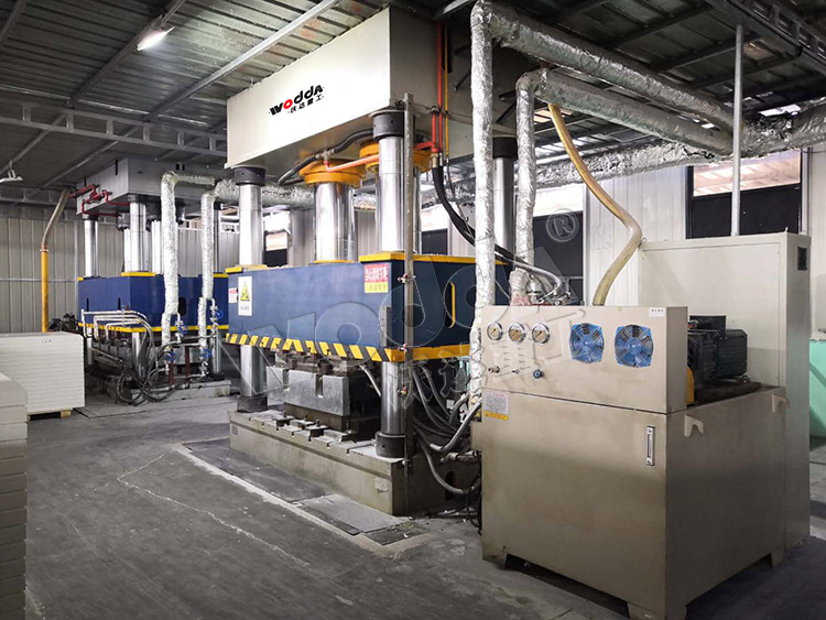 山东沃达重工液压机厂家生产的玻璃钢水箱液压机操作简单,工作参数可调。系统可配置模内抽芯控制系统和预设模内顶出控制系统,可实现快速下降、分段压紧、分段放气、工作、保压、慢速开模、快速返回、慢速脱模、快速顶出、顶出停留、快速返回等一系列动作,温度可多点控制。设备工作压力、行程、压制速度、慢回速度均可根据工艺需要在规定的参数范围内调节;操作灵敏简单,噪音小,压力稳定,可以满足不同的生产工艺需要等特点。