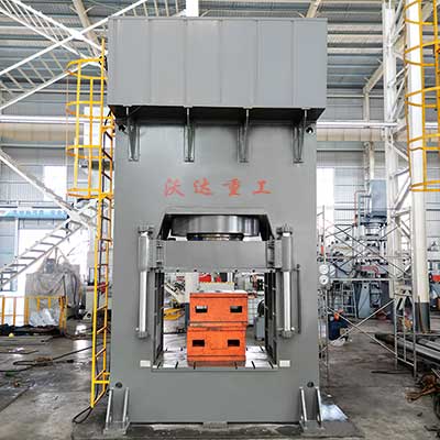 山东沃达重工液压机厂家根据塑料托盘的材质、规格、工艺,托盘厚度等,可为客户提供定做630吨、800吨、1000吨等多种托盘模压压力机设备。结构有四柱式、框架式供选择。三梁四柱结构稳定,四柱导向保证合模精准。框架式结构,整体刚性好,抗压强度高、精度高、抗偏载能力强;配有伺服数控系统,工作噪音低,塑料托盘液压机运行平稳,控制更加精准。欢迎客户来公司考察试机,塑料托盘液压机价格报价咨询热线:18963222388(同微信号)。