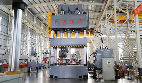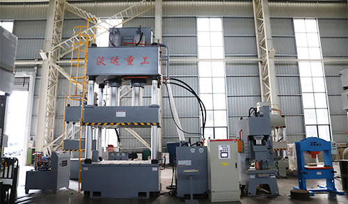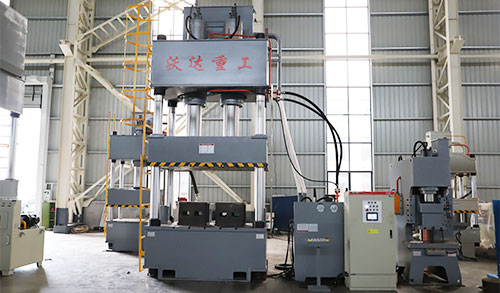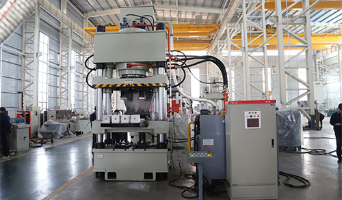 500吨四柱液压机是生产不锈钢洗菜盆的专用液压机,配置液压垫、多杆顶出,采用三梁四柱双缸结构,大台面承压均匀,具有良好的强度和刚度。液压系统采用二通插装阀,电气系统则采用PLC控制,使得操作方便且可靠