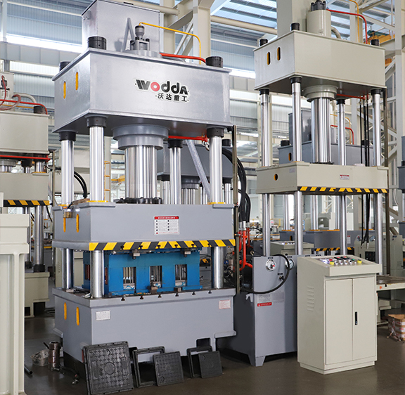 山东沃达重工设计生产的树脂井盖成型液压机整机结构紧凑,采用了先进高质量的液压电子元件,因而具有动作灵敏可靠,操作安全方便,工作平稳,低能耗以及使用寿命长、久经耐用等一系列优点。