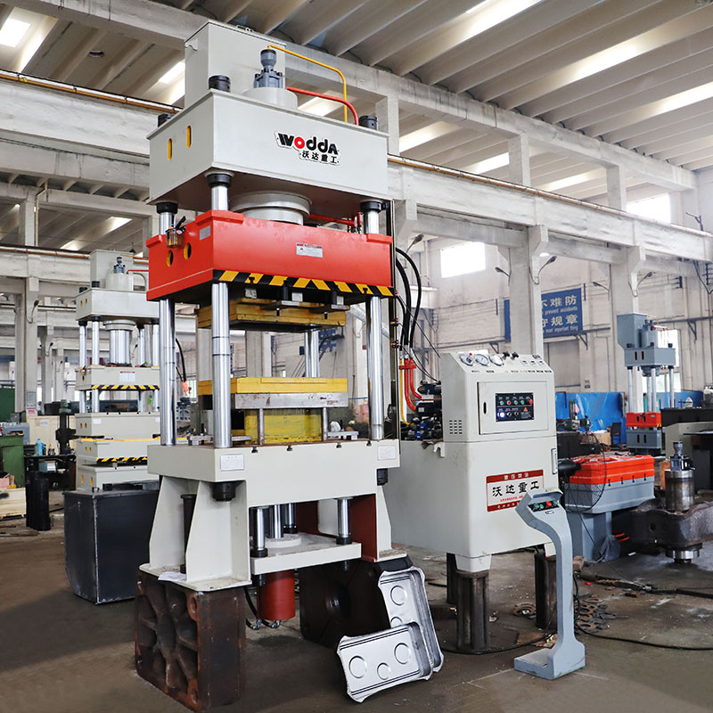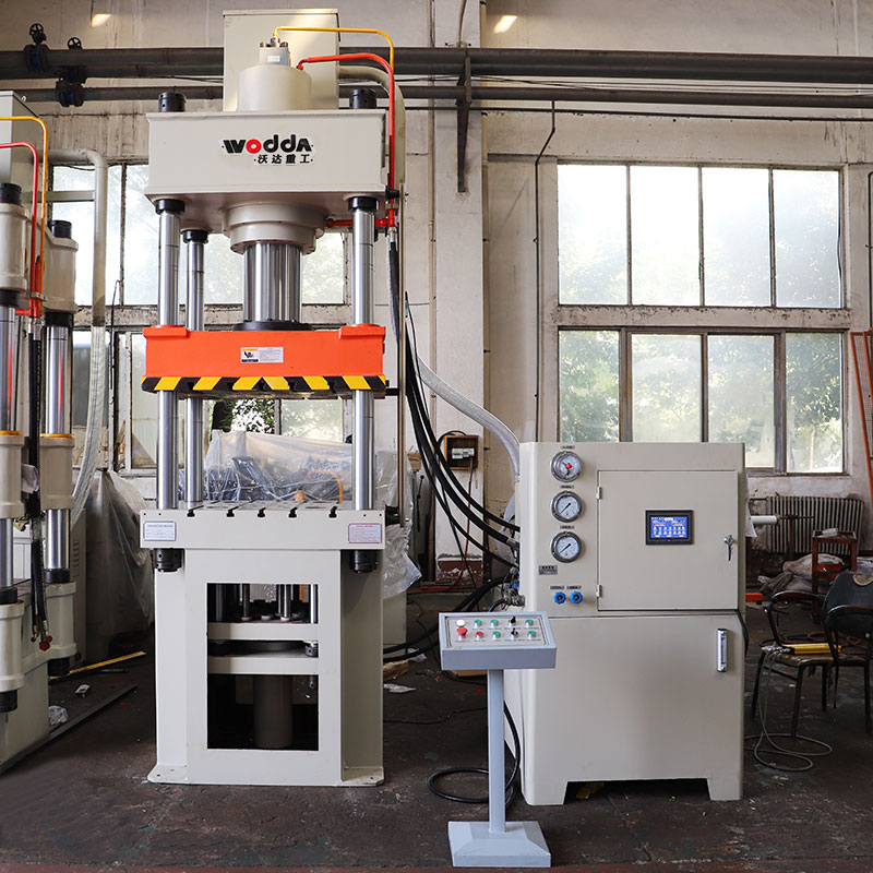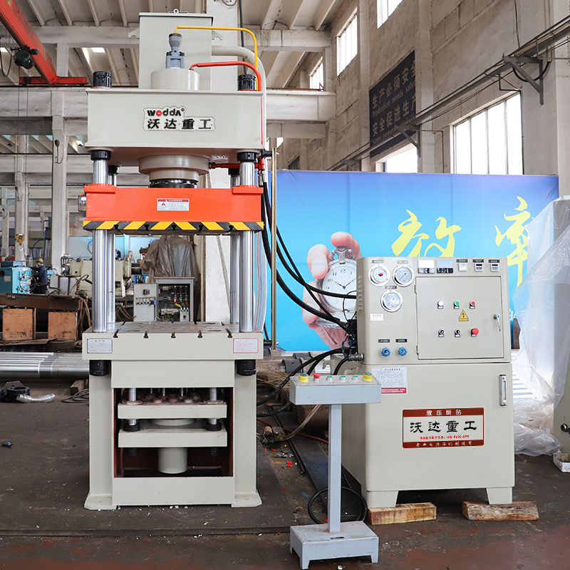 液压机厂家山东沃达重工生产的YQ27四柱双动拉伸液压机是指配置多顶杆液压垫结构的四柱液压机,在液压机进行薄板拉伸工作的时候,滑梁连接的的主油缸和液压垫会进行联动,使得拉伸精度更高,拉伸效果更符合要求。液压垫采用多点顶出,分为上置式和下置式。