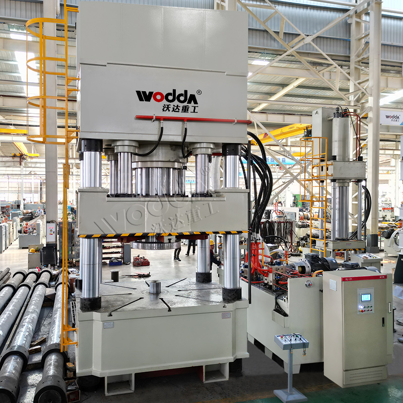山东沃达重工设计生产的封头拉伸液压机采用四柱结构,它由机身、主缸、压边缸、行程限位装置、润滑装置、液压动力系统及电气系统等部件组成。根据封头直径不用,使用的拉伸液压机吨位不同。可定做100吨-5000吨拉伸液压机。山东沃达重工液压机厂家直销热线:18963222388(同微信)