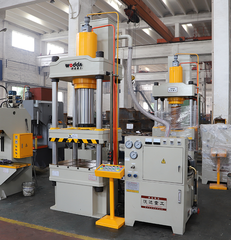 液压机厂家沃达重工可按客户要求加工定制,如200吨三梁四柱液压机的台面大小、行程长短、开口高低、工作压力、运行速度、自动上下料、自动/半自动等。量身打造优质液压机设备,满足客户生产工艺需求。