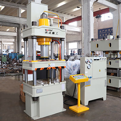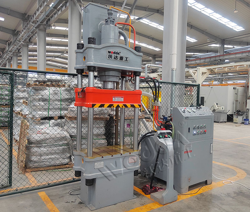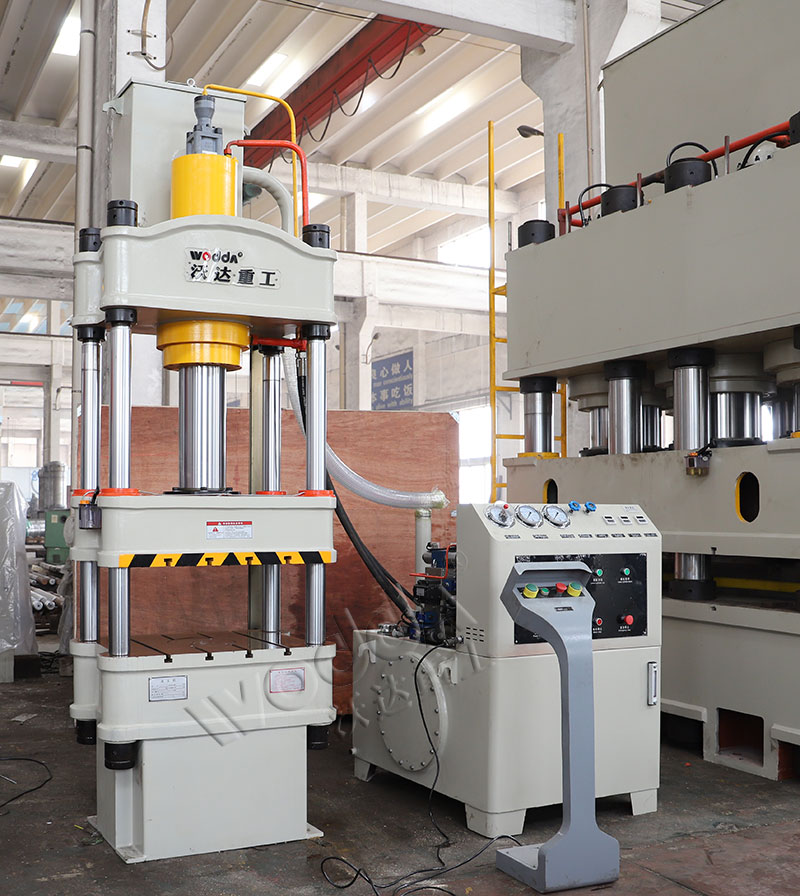 山东沃达重工可以根据用户需求设计定做液压机工作台面大小,比如700x700mm、800x800mm、900x700mm、1000x1000mm等。包括开口高度、油缸行程、吨位、工作速度等都可以设计定做。