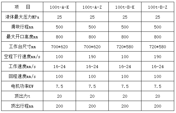 100吨三梁四柱液压机技术参数:(仅供参考)