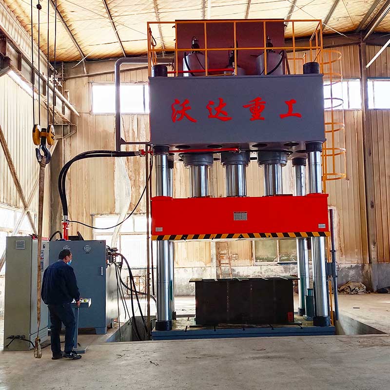 1500吨四柱液压机采用三梁四柱三缸结构,配备PLC触屏控制系统和伺服系统,支持手动和半自动两种操作模式,具备较高的自动化水平,支持连接物联网,远程监控生产动态和设备状态。