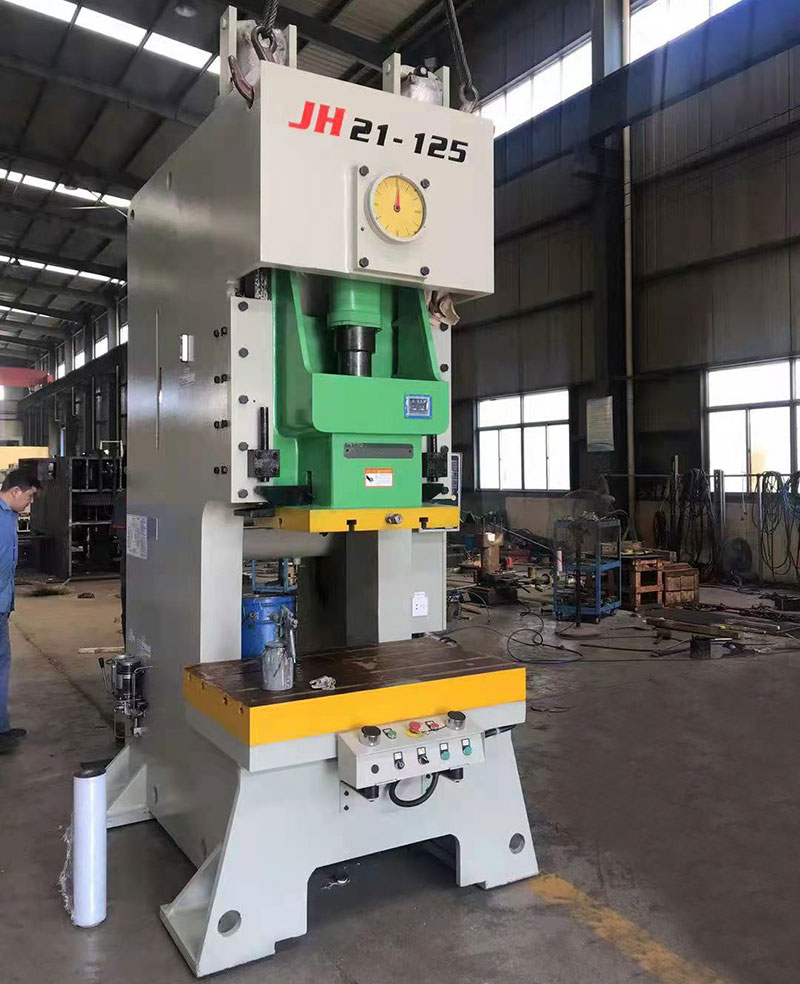 JH21气动冲床,也叫气动压力机,开式单点固定台压力机,是现代工业生产中常用的机器设备。如下图所示: