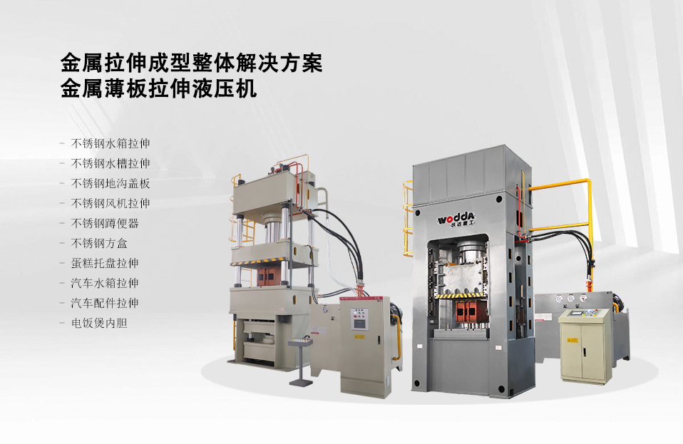 薄板拉伸液压机是拉伸机的一种,分为四柱式、框架式两种结构,主要用于金属薄板拉伸、弯曲、衡裁、挤压、成形等工艺。山东沃达重工可设计生产多种吨位结构的薄板拉伸液压机,常用有200吨、315吨、800吨、1000吨、1500吨、2000吨、2500吨等。可根据用户需要配件备打料装置、移动工作台、冲载缓冲装置、光栅安全保护装置、人机界面等。