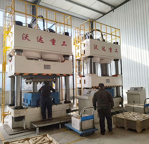 沃达重工提供高品质木屑托盘成型液压机,产能大、可按需定制,性能稳定,节能环保。可搭配木屑粉碎机、自动进料设备、电磁干燥机、储料仓、拌胶机、木屑托盘模具等组成生产线,伺服PLC全自动控制,提高生产效率。根据托盘的规格尺寸,常用1000吨、1250吨、1500吨、1600吨、2000吨等四柱液压机或框架式液压机。