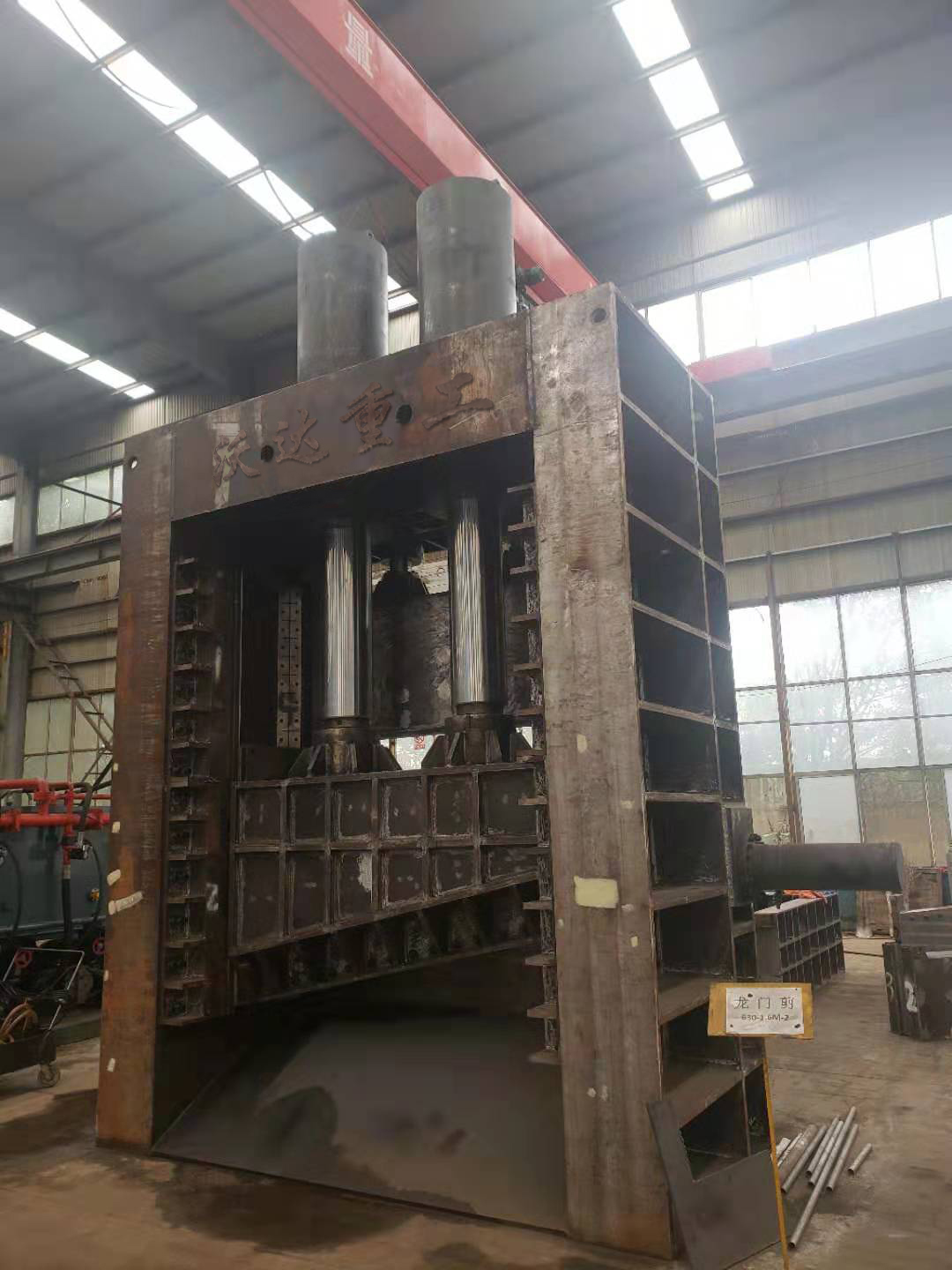 山东沃达重工生产的630吨龙门剪-龙门式液压剪切机,主要适用于大批量废旧钢材的加工,将钢板、镍板、铜板及多种型材剪切成多种小规格尺寸,可替代火焰切割,减低加工成本;如圆钢、方钢、槽钢、角钢、工字钢、钢板、钢管等废金属。