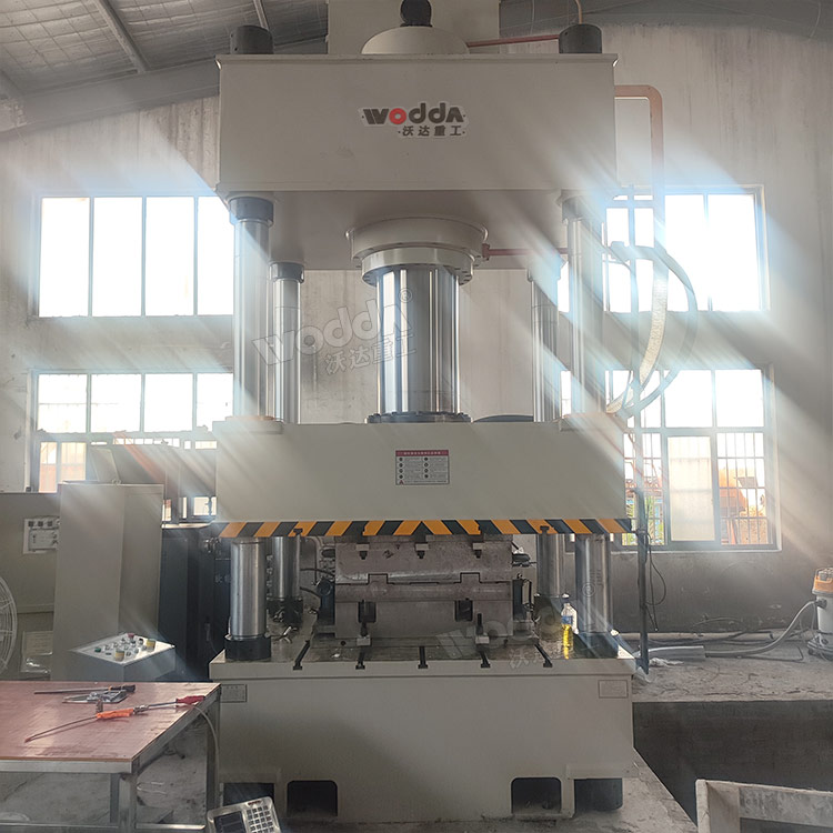 石英石水槽液压机工作台一般在1500×1200mm左右,油缸行程和开口高度则需要根据模具高度来设计。另外,315吨四柱液压机适合压制水槽的隔板、腿子。400吨四柱液压机与500吨四柱液压机适用于压制水槽的水池面板。配合加热模具保压几分钟一个成品就压制成功,生产效率较高。