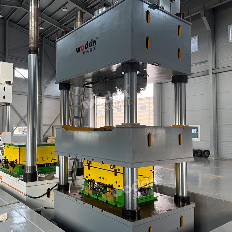 本机是国外客户定做的一台1000吨液压机,机身采用三梁四柱式结构,也称1000吨三梁四柱液压机,主要用于模压玻璃钢冷却塔风筒成形,配备主缸和顶缸,并采用按钮集中控制,具有独立的电控和液压系统,可实现启动和半自动操作。采用PLC控制系统实现对压力、速度、位移等参数的精确控制,保证玻璃钢冷却塔风筒的质量和生产效率。该系列压机主要用于热固性和热塑性DMC、SMC、BMC、GMT、LFT-D、FRP纤维增强塑料等复合材料制品的模压成型。