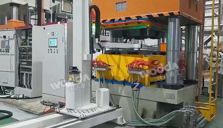 塑料经过进料系统进入挤出塑化系统,塑化后的的原材料进入存储系统进行存储,然后通过定量系统,根据所需的产品准确地供应给模具原材料。然后经塑料托盘液压机压制成塑料托盘。最后,塑料托盘被取出装置取出。整个过程可定制为全自动操作,无需人工操作,产品质量稳定!