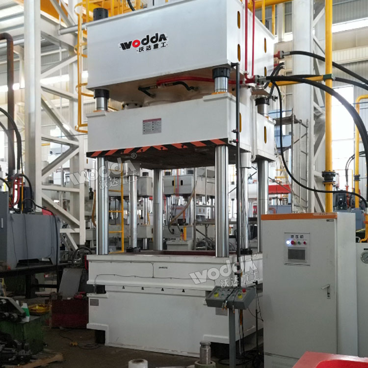 山东沃达重工机床有限公司设计生产有400吨、500吨、800吨、1000吨等蛭石板液压机,采用四梁四柱式结构设计,设备机身横梁采用整体铸钢或者钢板二保焊焊接而成,并通过振动或者回火处理消除内应力,确保机身不易变形;工作台上平面和滑梁的下平面经大型落地镗铣床和数控龙门铣床精铣,确保了表面的平面度和平行度,从而保证蛭石板液压机的精度;
