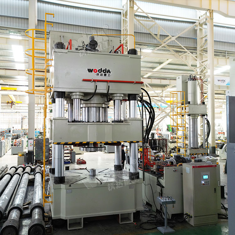 其次,封头液压机结构是影响封头液压机价格的第二因素,根据封头的材质、工艺有四柱式、框架式多种结构。从机器造价方面考虑,四柱式封头液压机是比较常用的,有三梁四柱式带压边缸封头成型压力机、四梁四柱式双动封头拉伸液压机两种结构,主要适用于各类压力容器封头的冷、热成型压制,也可用于各类厚、薄钢板的压鼓、折边、校平等工艺。山东沃达重工液压机厂家设计生产的封头液压机大都采用三梁四柱式带压边缸形式的,结构简单,经济实用,压出来的封头品质优质,厚度均匀。