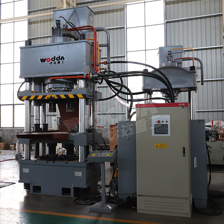 400吨盐砖机是一台四梁四柱式结构的盐砖生产设备,也称盐砖压块机,用于压制2.5公斤或者3公斤盐砖,一模出两块,设备具有效率高,能耗低,操作简单,降低人工成本。机器可实现一键操作可完成自动送料、自动压制、自动脱模、推料等。液压机厂家可根据客户需求定制盐砖机生产线,包括四梁四柱液压机、盐砖模具、粉末送料机、机械手等,完成全自动盐砖压块成型。