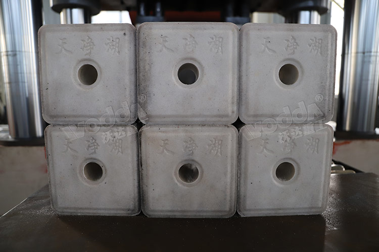 3、四组导向结构,成型压力大,压制的产品密实度高,不易破碎。