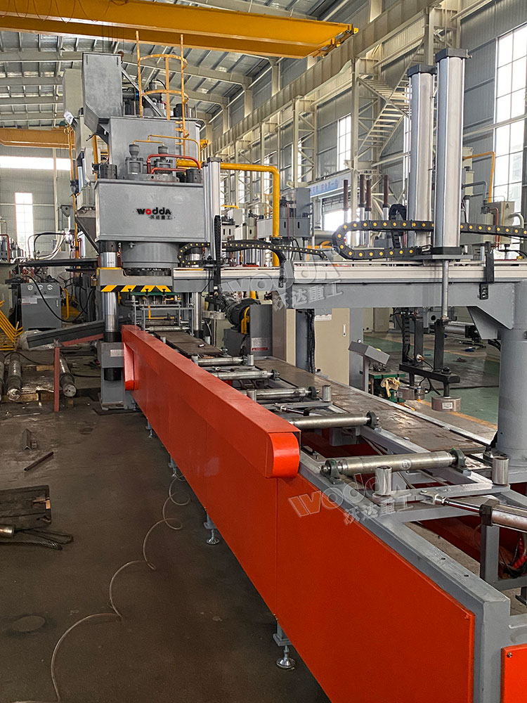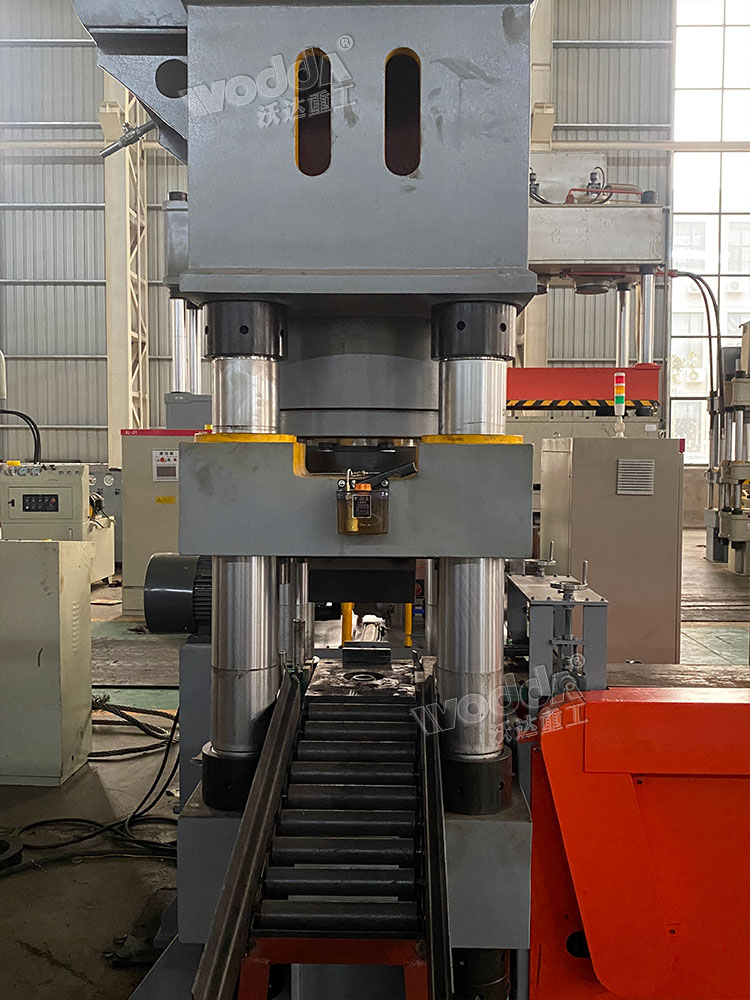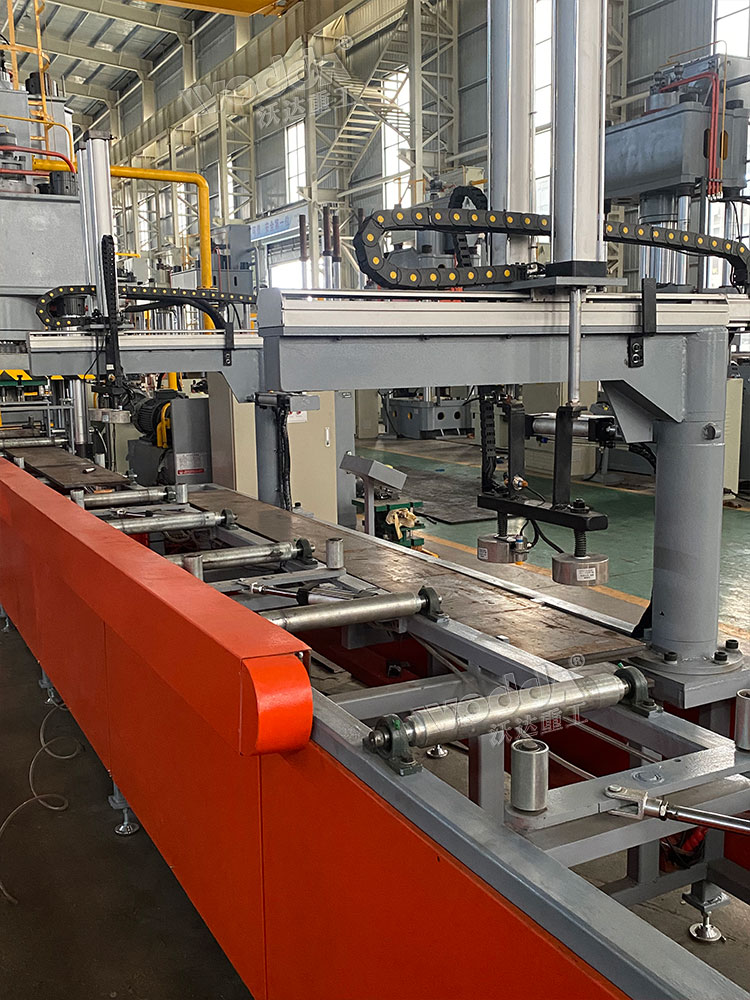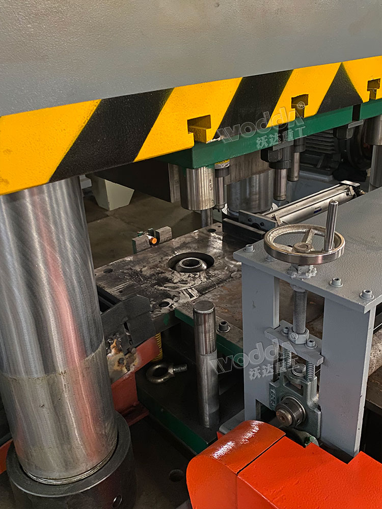 如上图展示的是山东沃达重工生产的一套锚杆托盘自动化生产线,包含自动上料装置、500吨四柱液压机、锚盘模具等,还可以根据客户需求配置自动码垛机等,提高生产效率。