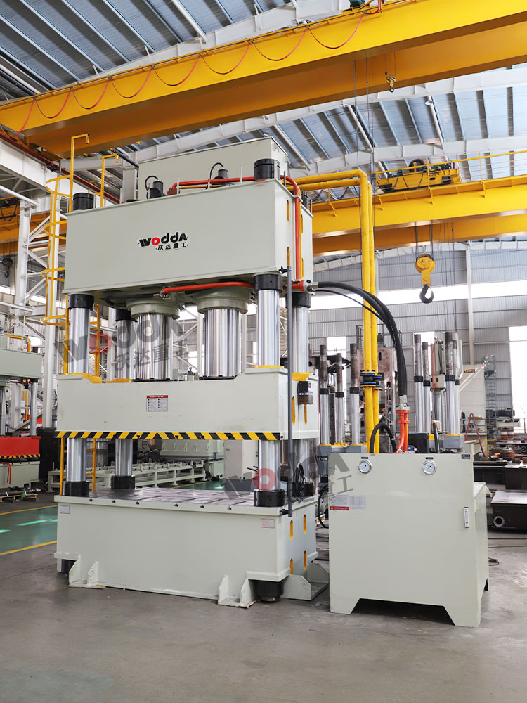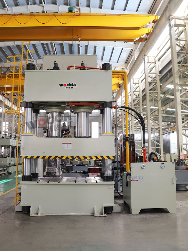(3)可靠性高:防爆盾头盔成型设备-315吨500吨四柱液压机四柱结构的设计使得设备的各个部件更加稳定和可靠,减少了设备的故障率和维修频率,提高了设备的可靠性。
