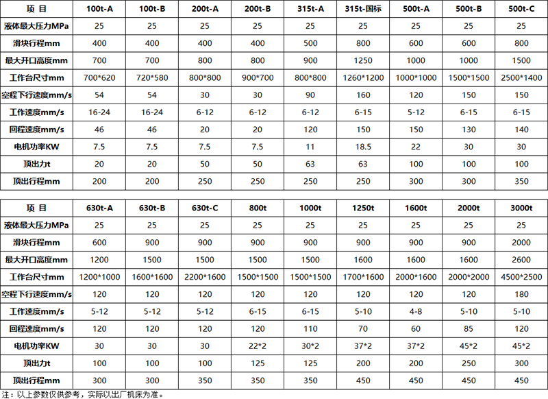 200吨四柱液压机(三梁四柱液压机)主要技术参数:
