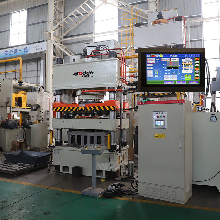 3、630吨四梁四柱液压机采用独特的压制成型工艺,成型压力大,压制的产品质量好,不易破碎,外观优美。