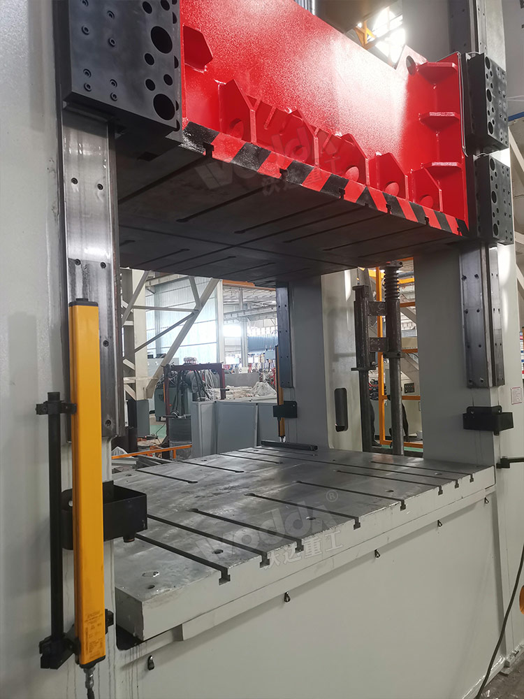 800吨框架式液压机又称框架油压机,是山东沃达重工机床有限公司为用户定制的一款伺服框架式液压机,机身采整体框式机身结构,主要构件为钢板焊接结构。滑块采用斜楔式四角八面导轨导向,具有刚性好、精度高、抗偏载能力强的优点。800吨框架式液压机也是一款多功能型液压机,广泛应用于金属板材拉伸成型、复合材料模压成型、热锻成型等,一般根据工件的特点,按需设计定做机器的工作台面、开口、行程、配置等。