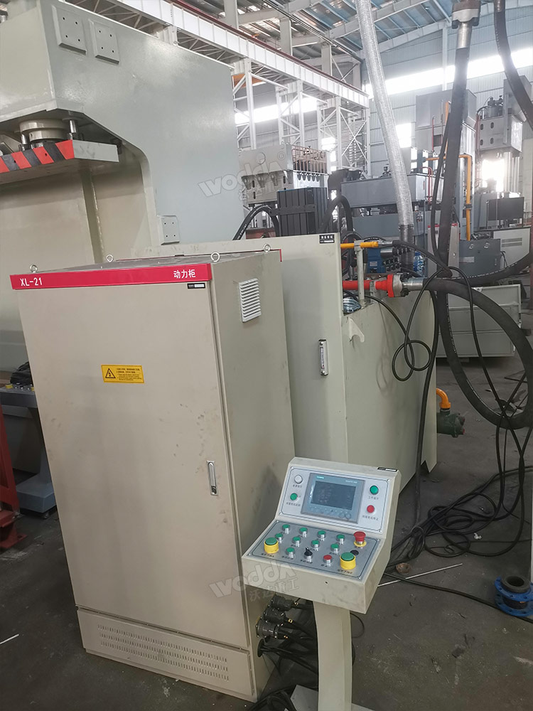 3、800吨框架式液压机采用按钮集中控制,具有调整、手动和半自动(定程单次和定压单次)三种操作方式。