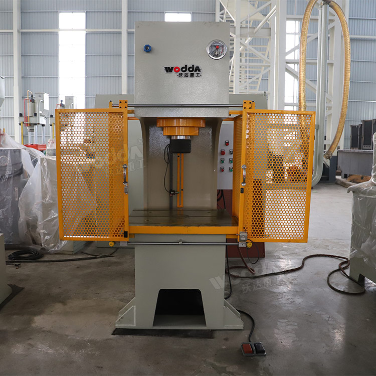 100吨单柱液压机是一款多功能型液压机,也称为单臂油压机、C型液压机,分为压头式和四柱导向式两种。它主要用于金属制品拉伸、成型及压制等工艺,也可以加工非金属材料、粉末冶金制品的压制、轴类零件的校正、套类零件的压装以及金属制品的整形、切边等工艺。