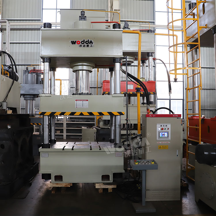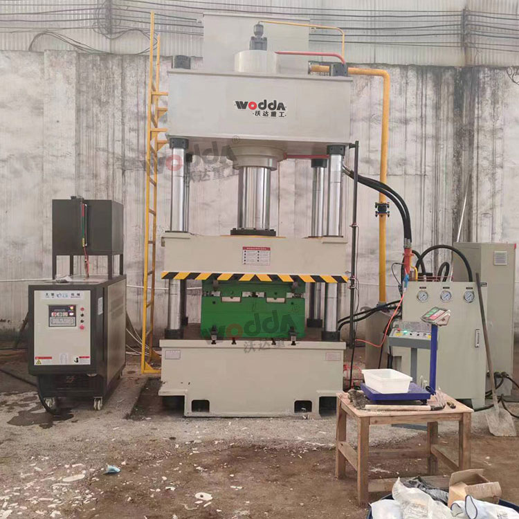 石英石水槽的生产是通过液压机配合模具,将石英石颗粒与树脂的混合而成的浆料灌入到水槽模具的成型腔中,在高温高压下快速一次压制成型,整体加工效率快。该液压机又名热压石英石水槽成型液压机,多采用三梁四柱式结构,常用315吨,400吨,500吨,630吨等吨位。本文就给大家介绍一款沃达重工400吨热压石英石水槽成型液压机。
