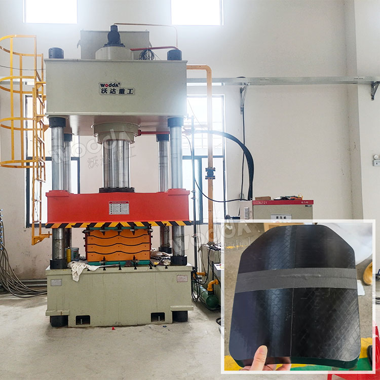 630吨四柱液压机也可用于防弹面罩的热压成型,通过精确控制压力和行程,实现高质量的模压成型。