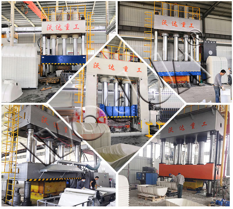 SMC玻璃钢化粪池液压机该设备属于SMC复合材料成型模压机设备。是模压加工生产玻璃钢化粪池的极佳设备。根据液压机厂家沃达重工设计生产经验,订购的液压机吨位有1000吨、1500吨、2000吨、2500吨等。通过玻璃钢化粪池液压机模压成型,采用AB结构胶粘结或螺栓法兰连接方式,有小型整体式和大型组合式。玻璃钢化粪池液压机可以为客户压制1立方、1.5立方、2立方、2.5立方、3立方等不同规格的的玻璃钢化粪池,设备运行稳定,生产效率很高。