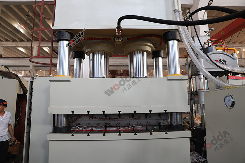 5、1000吨四柱液压机装有陶瓷发热砖的烤盘,可瞬间对特殊膜片加热至200°-300°,节约烘烤时间,提高产能。