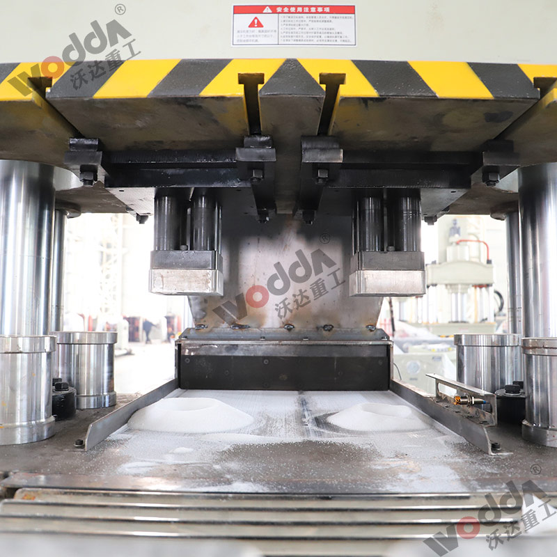 山东沃达重工是鲁南地区经验丰富、实力雄厚的一家液压机设计生产制造企业,根据公司生产经验,5公斤舔盐压块液压机选用315吨液压机会出现压制密实度不高问题,一般推荐客户使用400吨四梁四柱液压机且一模出一块,一模出2块5公斤舔盐块需要使用630吨四柱液压机。这里山东沃达重工从自身角度分析给出如下几点建议: