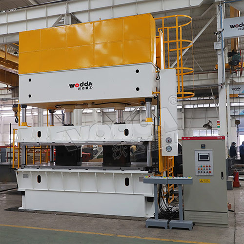滕州匣钵成型液压机厂家哪家好?山东沃达重工机床有限公司可根据匣体的材质、尺寸定做匣钵液压机,四梁四立柱结构,模框固定在中间固定梁上。上下压头分别固定在上、下活动梁上。通过由固定在上、下固定梁内的主油缸驱动,上、下活动梁对砖坯进行双向加压。确保砖坯密实度高。由于上、下冲头是固定在上、下活动梁上,而上、下活动梁是经精密加工的,四立柱导杆滑动运行,从根本上解决了冲头撞帮的可能性,不但运行速度高,且主油缸密封磨损小。不易损坏和泄漏。故障率低。