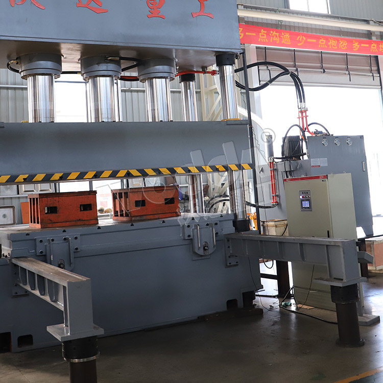 4、1200吨四柱液压机工作压力、工作行程可在规定范围内按工艺要求调节,操作简便。