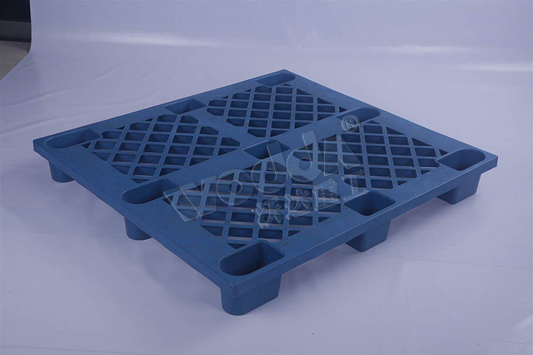 塑料托盘采用模压工艺生产,型号规格较多。塑料托盘成型液压机压制的常见的面部结构有网格面,有平板面的。底部结构有川字型的,田字型的,九脚的。生产具体流程如下:
