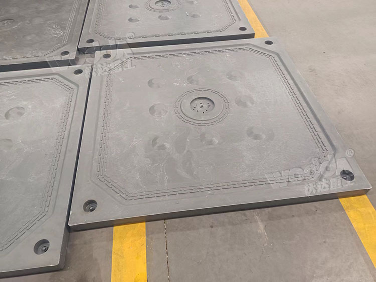 滤板的材料一般选择分子量在150万至350万的超高分子量聚乙烯或聚丙烯树脂,然后通过1250吨复合滤芯板液压机模压成型。压滤机滤板模压成型,加工效率高,保压时间均可在参数范围内,根据不同的滤板成型工艺进行调整。