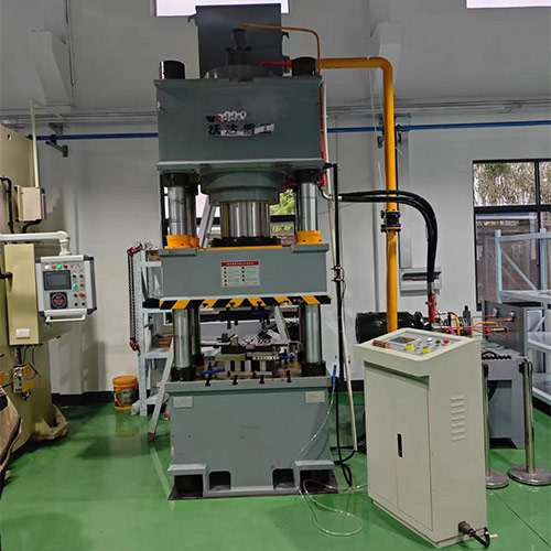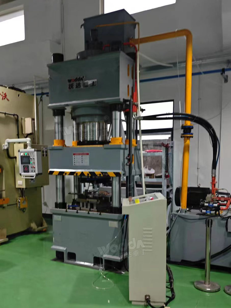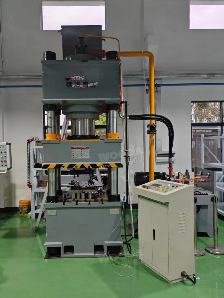 400吨新能源汽车零部件成型液压机是一款三梁四柱液压机,型号YQ32-400T,是山东沃达重工机床有限公司根据客户需求定制的专用液压机,主要适用于金属制品的成型,如金属冷压成型等。400吨三梁四柱液压机可根据客户需求进行定制,如选配光栅保护、散热装置、PLC控制系统等,以满足不同生产场景的需求。