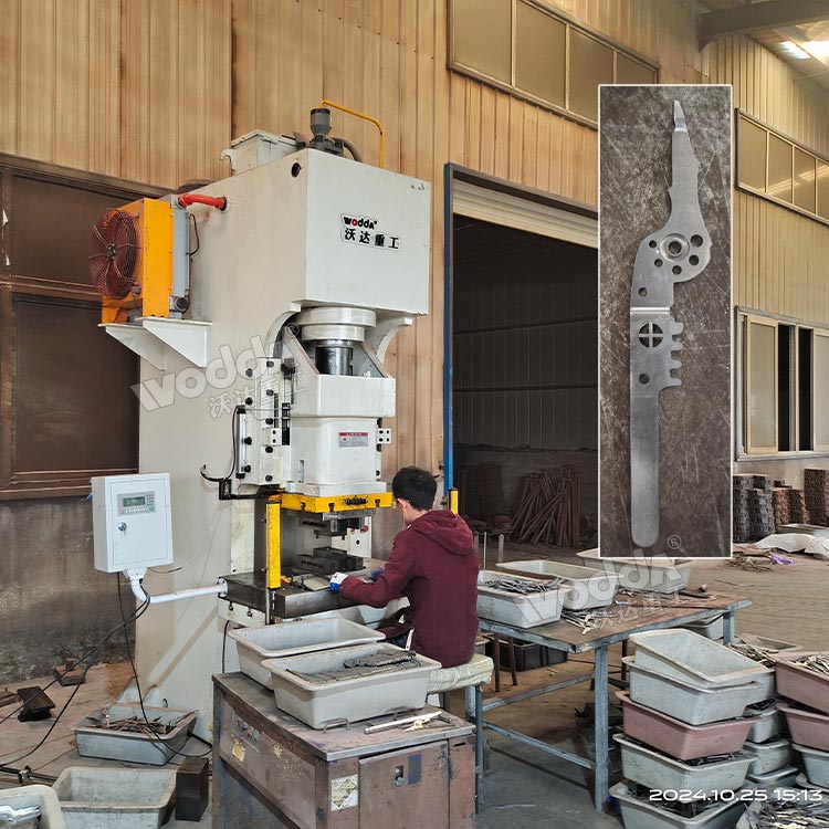 本文介绍的是一台100吨液压冲床,是客户定制的电工剥线钳冲压设备,为开式C型机身设计,矩形六面导轨滑块,精度稳定性好,集液压机以及冲床优点于一身,可适用于板料的冲裁、弯曲、翻边、薄板拉伸、精冲、金属零件的冷挤压工艺。通过液压系统驱动滑块进行冲压,具有冲压精度高、速度快、噪音低等优点。100吨液压冲床适用于对冲压精度要求较高的场合,如汽车制造、电器制造等行业。