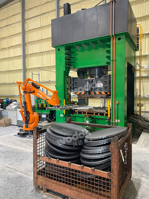 1000吨海洋浮标配件冲压液压机是专门用于冲压海洋浮标配件的液压冲床,是山东沃达重工根据客户需求定制的一款1000吨框架式液压机,整机刚性好,四角八面导轨导向设计,精度高、抗偏载能力强的特点,主要用于金属板材冲压、复合材料模压、模锻件锻造、汽车覆盖件拉伸等工艺领域。