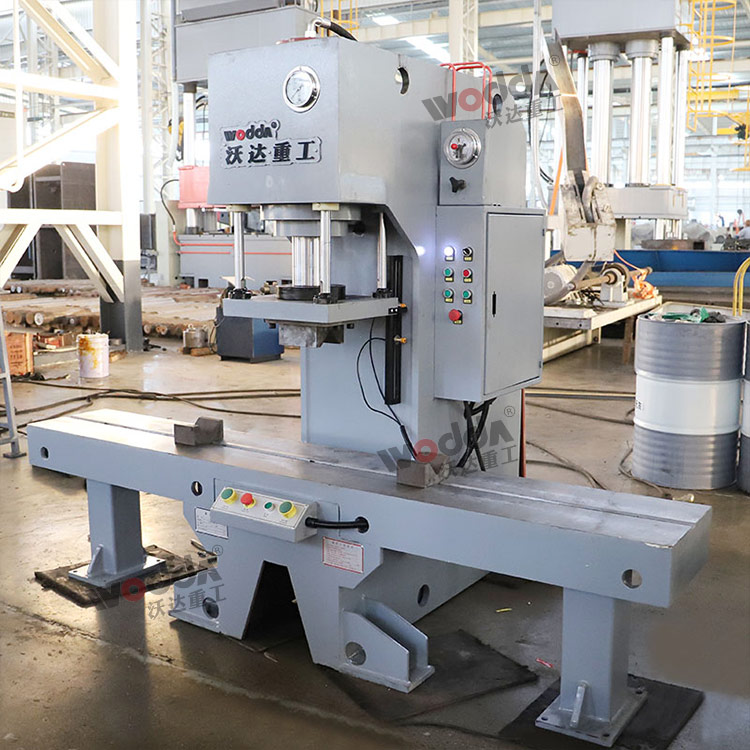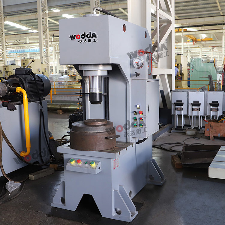 单臂液压机,机身为C型单臂式结构,采用全钢板CO2焊接,焊接后通过回火时效处理,确保机身不易变形。本系列液压机设有独立的液压与电器控制系统,采用按钮集中控制,可实现定程和定压两种成型工艺,具有压力显示和行程、压力调节等功能。立柱、活塞杆淬火后镀铜和硬铬,保证表面的耐磨性和较高的粗糙度,油泵进油口装有独特的过滤装置,确保油泵和阀的使用寿命。油路连接采用进口高压软管,降低机器噪声。