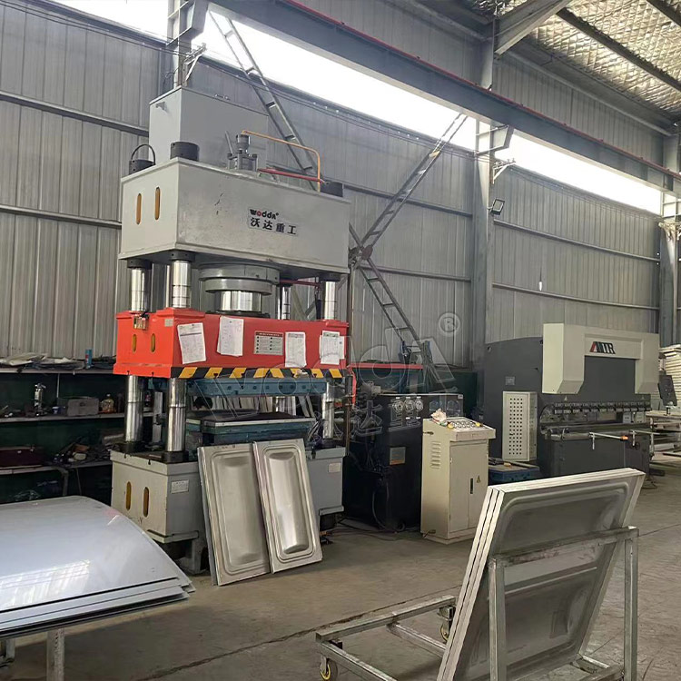 2、如果生产的是1000*3000mm三联式、1*2m等较大的不锈钢水箱板,推荐使用800吨、1000吨、1250吨等四柱液压机,样式、规格特殊的,也可使用框架式结构的不锈钢水箱板液压机;