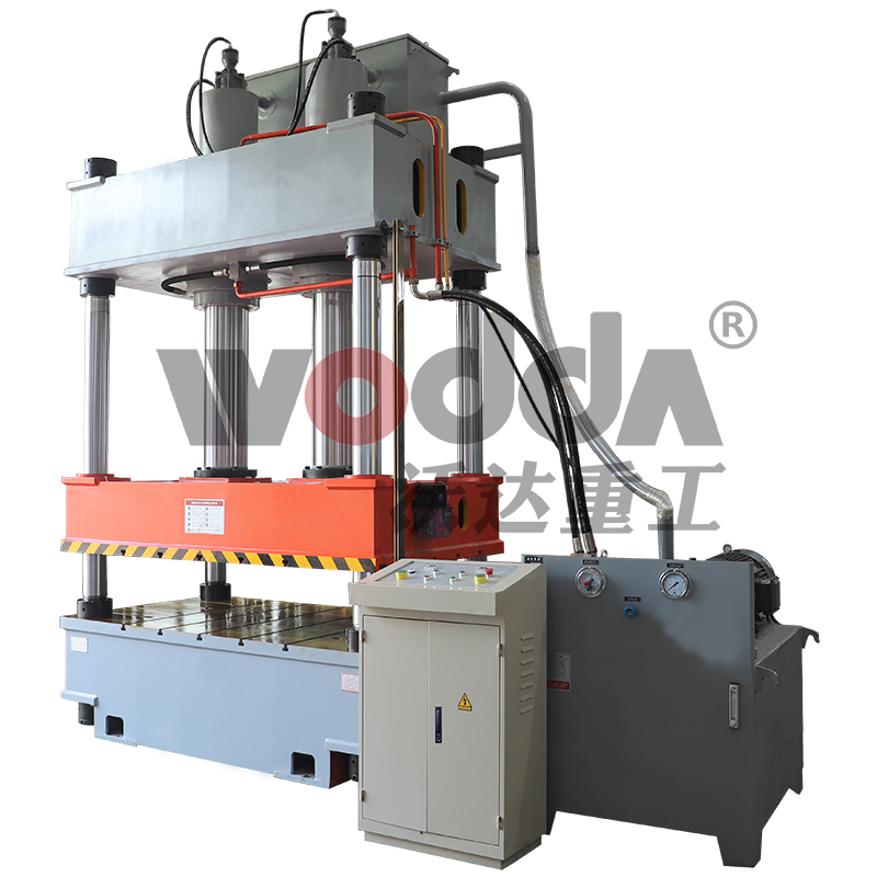 油压机由主机及控制机构两大部分组成。油压机主机部分包括机身、主缸、顶出缸及充液装置等。动力机构由油箱、高压泵、低压控制系统、电动机及各种压力阀和方向阀等组成。动力机构在电气装置的控制下,通过泵和油缸及各种液压阀实现能量的转换,调节和输送,完成各种工艺动作的循环。