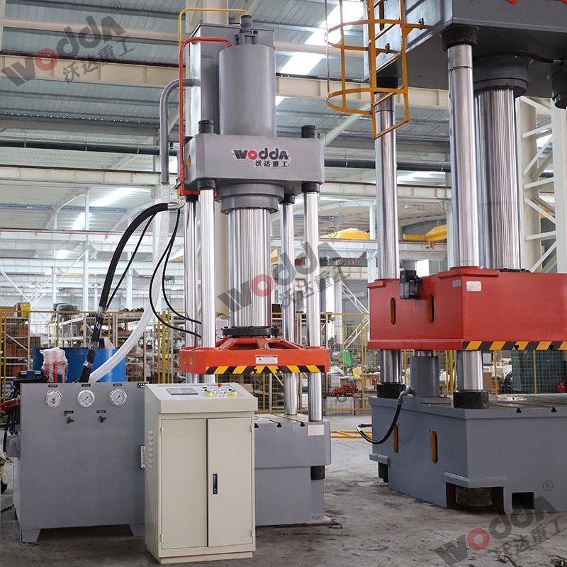 山东沃达重工生产的耐火材料液压机(耐火砖、石墨匣钵、坩埚)设备采用进口PLC控制程序,主要组成部分:主机架为铸钢上下梁结构,坚固耐用。四柱采用先进的镀铬工艺,美观大方,安全可靠。液压油箱,用于储存工作介质,46号抗磨液压油。电器控制系统,用于控制各个油缸的动作,实现全自动。液压阀组,采用高密度大通径油路块,流量大,速度快。动力系统是由电机和油泵组成,操作简单,运行平稳,故障率低,连续工作能力强。