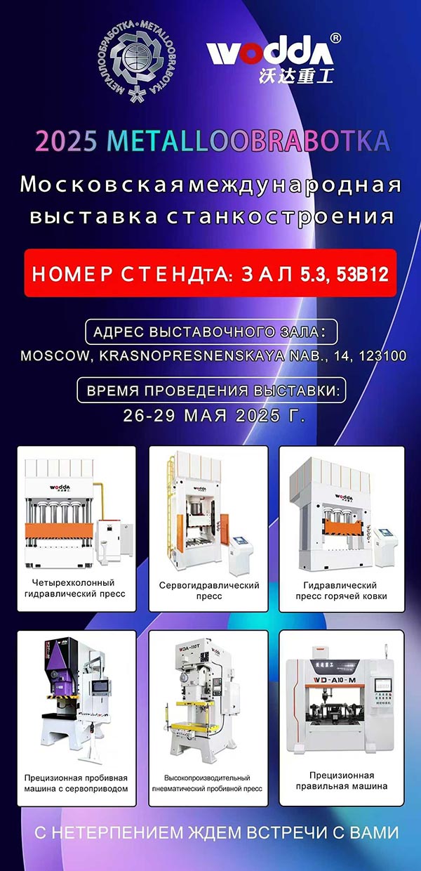 2025年5月26日至29日,备受瞩目的俄罗斯莫斯科国际机床工具展览会 METALLOOBRABOTKA将在莫斯科克洛库斯国际会展中心盛大启幕。作为全球工程机械领域极具影响力的盛会之一,汇聚了来自世界各地的顶尖企业与前沿技术,是行业交流合作、展示创新成果的重要平台。沃达重工作为中国优秀的液压机械制造商,将携旗下先进产品与技术,荣耀参展,与全球伙伴共襄盛举!
