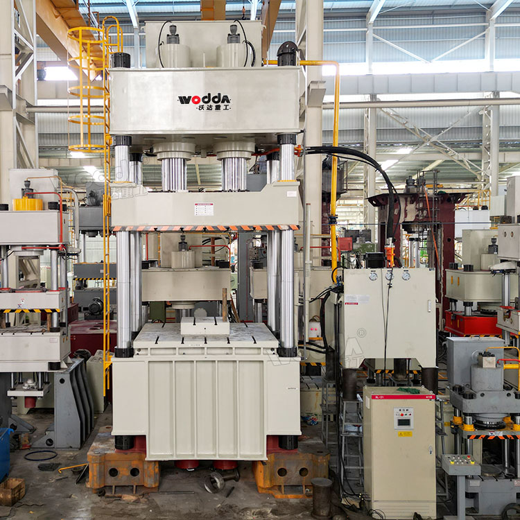 800吨三梁四柱液压机带有液压垫装置,特别适用于各种深、浅拉伸工艺,防止板料成型时材料流动过快造成的起皱或拉裂,提高工件的拉伸质量。尤其是对不锈钢制品厂的铝质薄板拉伸和铝制品的压制成形及不锈钢制品的正反拉伸成形有良好的辅助作用。