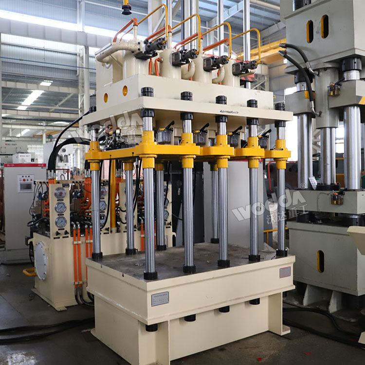 7、调节下缸的溢流装置,通过压力表的配合使用,结合实际成形工艺,可以分别调节各工位拉深力、压边力,实现各个道次成形的差异化要求;