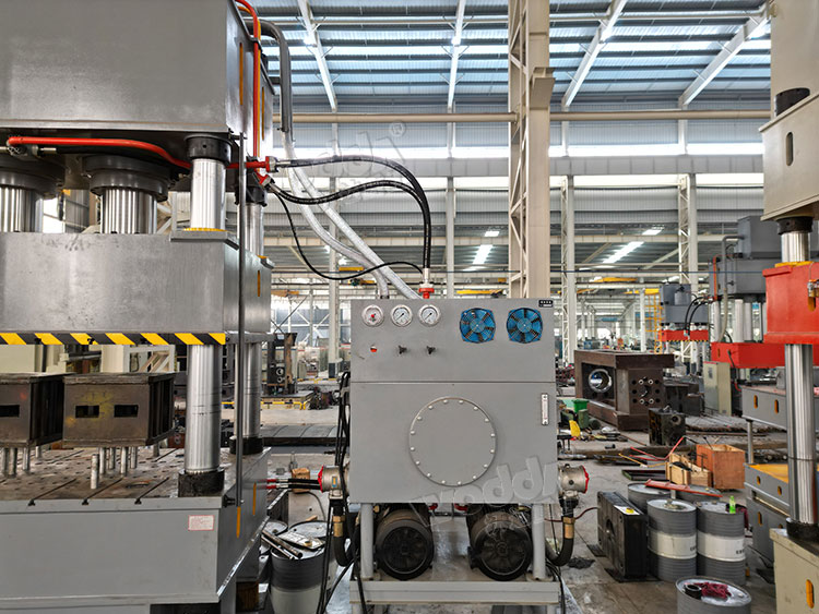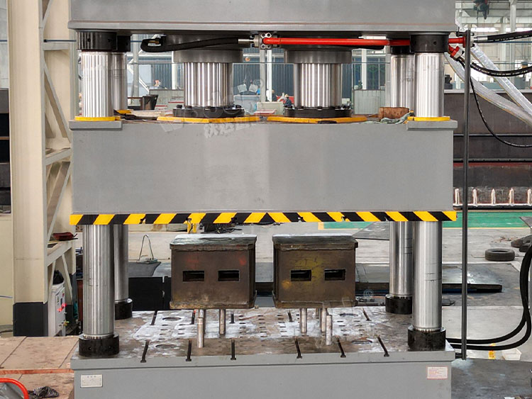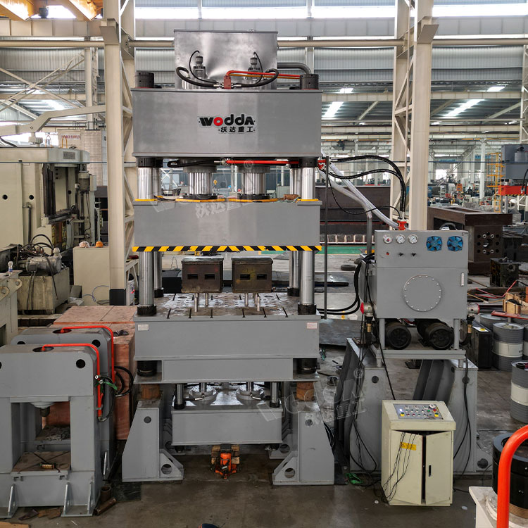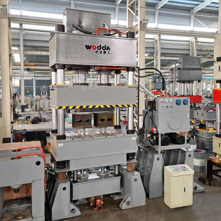 630吨四柱液压机是山东沃达重工设计生产的一款四柱拉伸液压机,机身采用三梁四柱式结构,配置液压垫和多顶杆,用于不同形状和深度的薄板材料的拉伸成型。630吨四柱液压机带液压垫主要是能防止板料成型时材料流动过快造成的起皱或拉裂,提高拉伸件的产品质量,降低废品率。