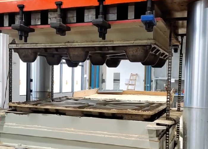采用液压系统提供强大的压制力,确保木屑与粘合剂充分结合,使托盘成型更牢固、稳定。